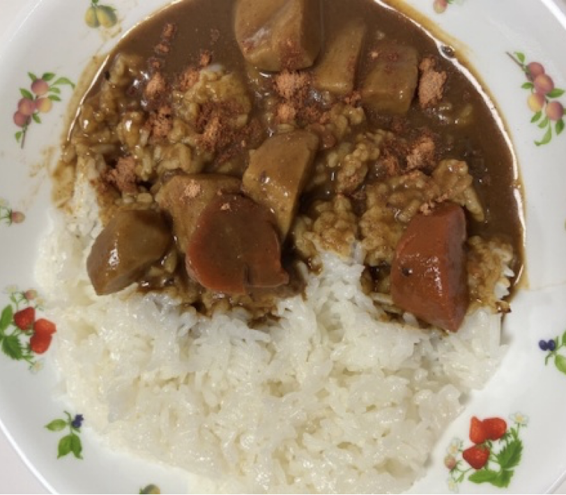 - あとはカレーにふりかけるだけ。